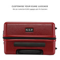 Stylish Classic Set of 3 orange luggage with seated couple.